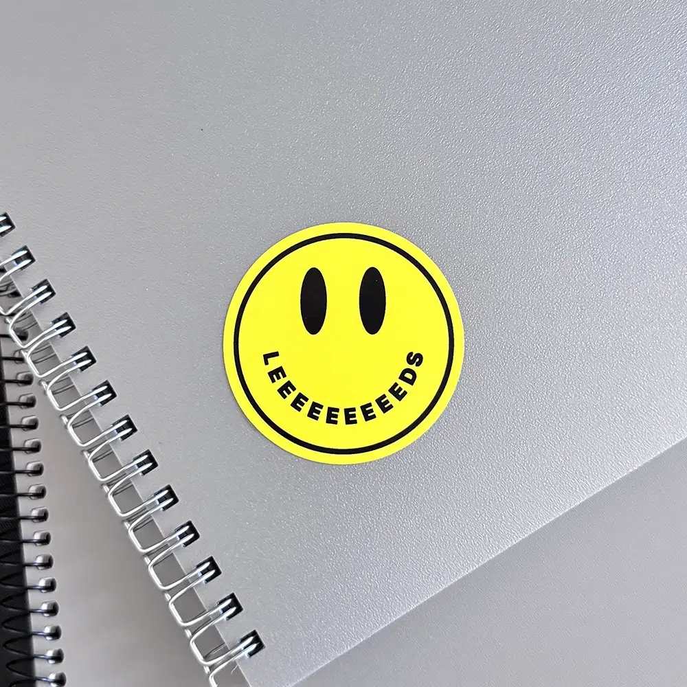 Spread your best Leeds smile with a bespoke Leeds Smiley (Smileeds) sticker, paying homage to the famous Acid House design and celebrating Leeds’ own rave culture.